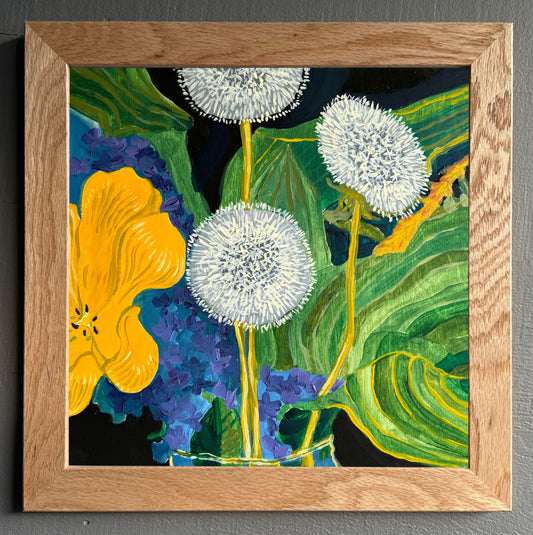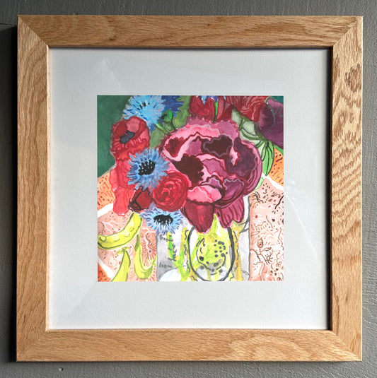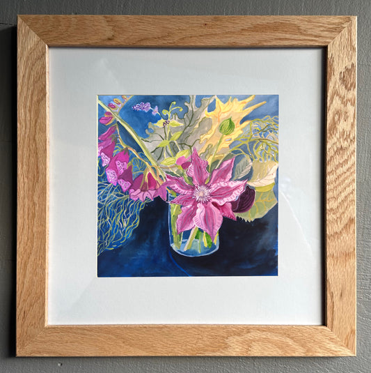 'Dahlias in a Jar with Peas' Framed Original Painting